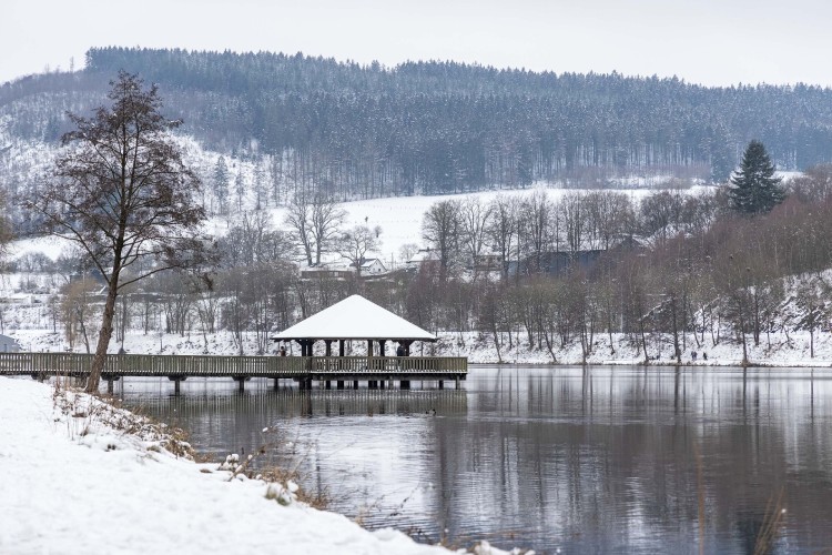 Lac Doyard sous la neige à Vielsalm (© Ardenne Résidences)