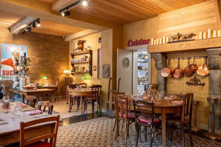 À Heyd, L’Étable sert une cuisine franco-belge dans une atmosphère rustique où les chiens sont acceptés.