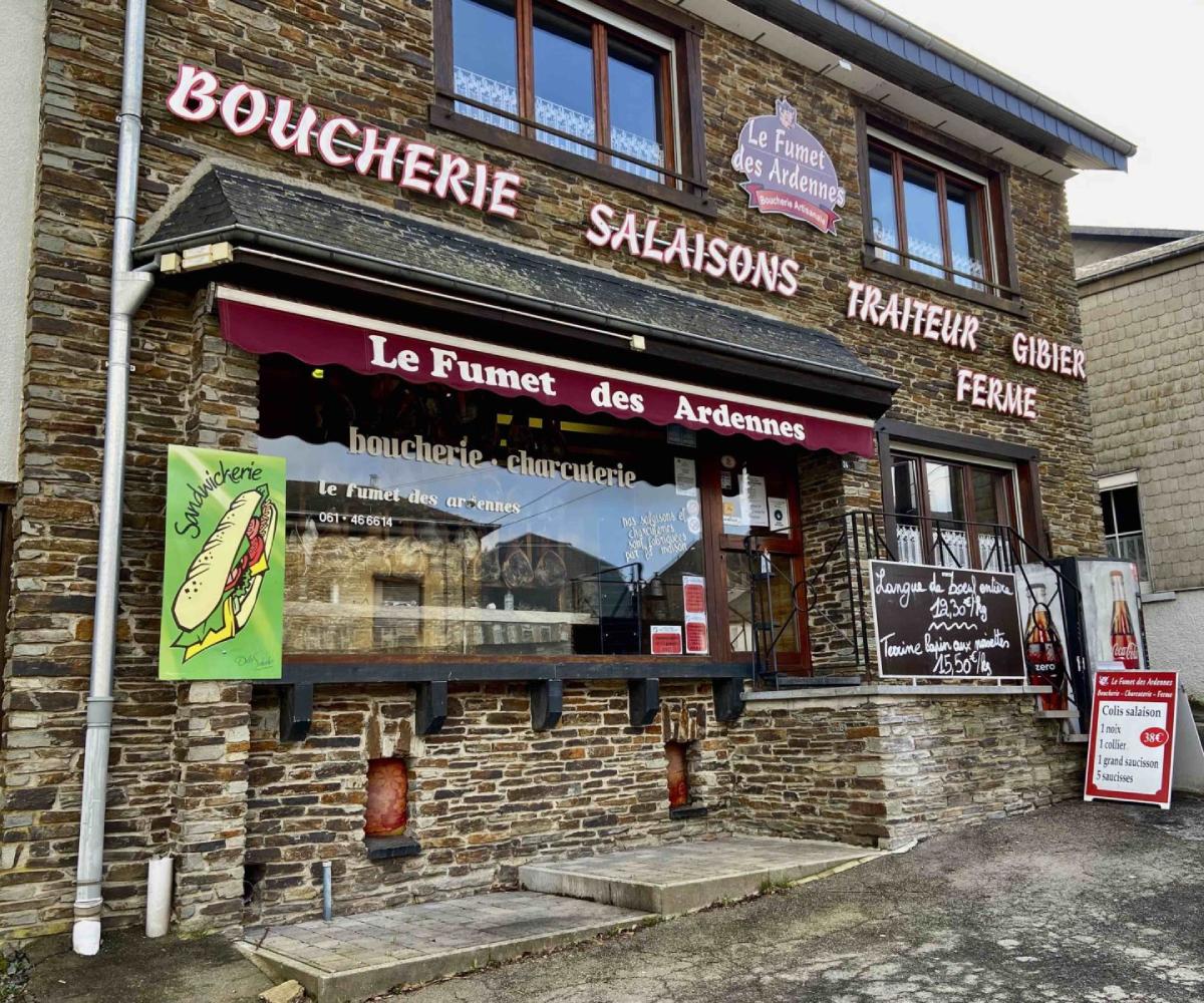 Devanture de la boucherie : Le Fumet des Ardennes (© jecuisinelocal.be)