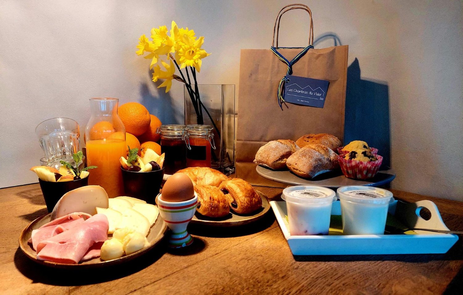 Le fonctionnement est simple : il suffit de passer commande en ligne (livraison à 15km de Durbuy/Grandhan), de sélectionner son type de panier, ses préférences, et de laisser la magie opérer. Le lendemain matin, tout est livré dans un sac réutilisable, prêt à être dégusté au réveil, sur la terrasse ou au coin du feu.