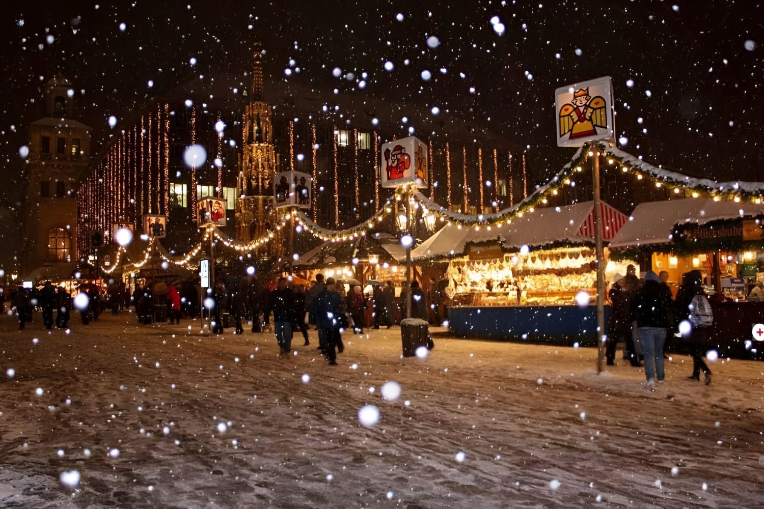 Pendant ce temps, les enfants glissent sur la patinoire installée sur la place, tandis que la ville tout entière s’illumine de guirlandes et embaume la cannelle, le bois et les épices.