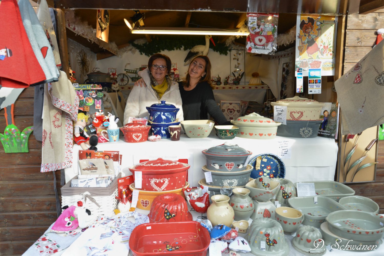 Un Noël aux couleurs de l'Alsace, c'est savourer de délicieux produits régionaux. Dégustez du vin, une part de tarte flambée, des biscuits, du foie gras, de la munstiflette, des saucisses, du pain d'épices, de la choucroute et des liqueurs. En plus des plaisirs culinaires, le marché met à l'honneur l'artisanat alsacien : céramiques, marqueteries, couronnes de l'Avent et bien d'autres trésors !