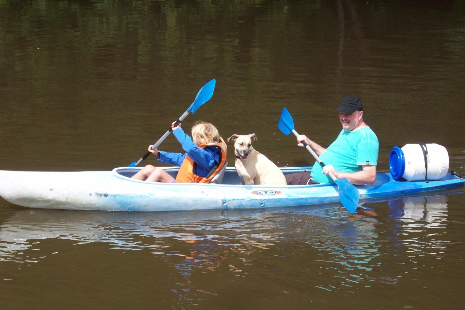 Les chiens sont aussi les bienvenus pour descendre la Semois ! (© amipierre-kayak.be)