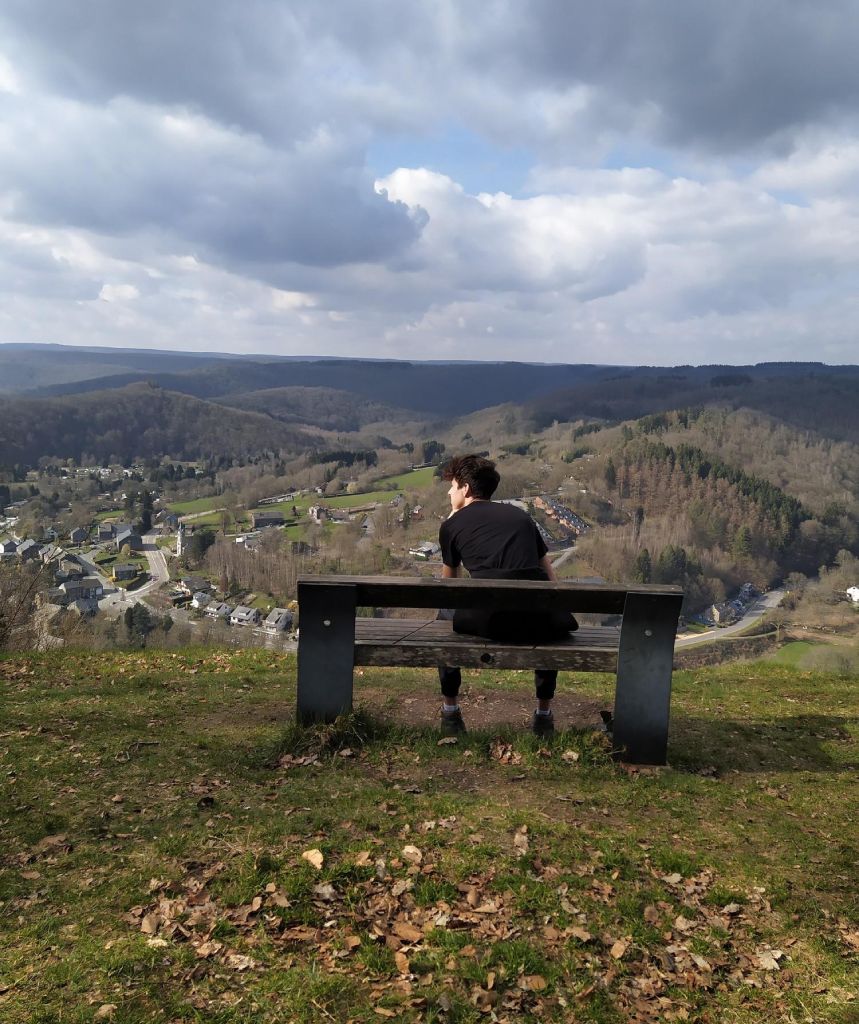 Boven opent het landschap zich meteen. U kijkt uit over de bocht van de Semois en over Membre, dat onderaan tegen de heuvels ligt. Het belvédère, op ongeveer 325 meter hoogte, biedt een vrij zicht op de rivier en het beboste reliëf dat zo typerend is voor dit deel van de Ardenne. Het is een plek die uitnodigt om even halt te houden, in een rustige sfeer, met gefilterd licht tussen de bomen en een open horizon.