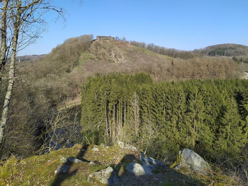 Uitzicht op het kasteel van Herbeumont vanaf het Tombeau du Chevalier (© paysdebouillon.be)