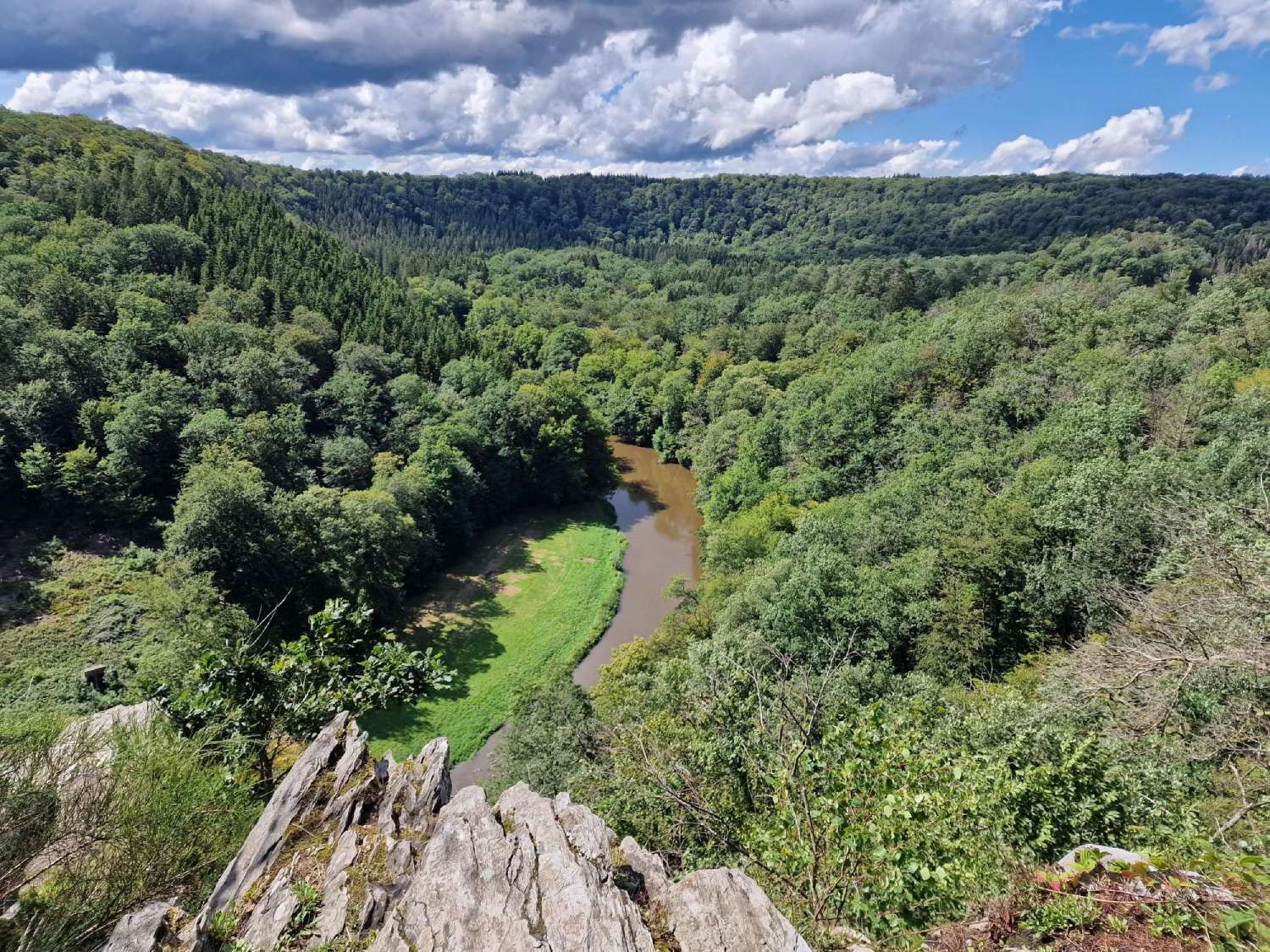 De wandeling start in het dorp Chiny, waarna het pad snel stijgt door het bos. De eerste klim brengt u rechtstreeks naar de Rocher du Hat, een indrukwekkend uitkijkpunt over de vallei van de Semois.